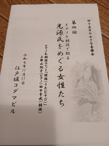 第4回ピアノと朗読で綴る光源氏を巡る女性たち終演しました